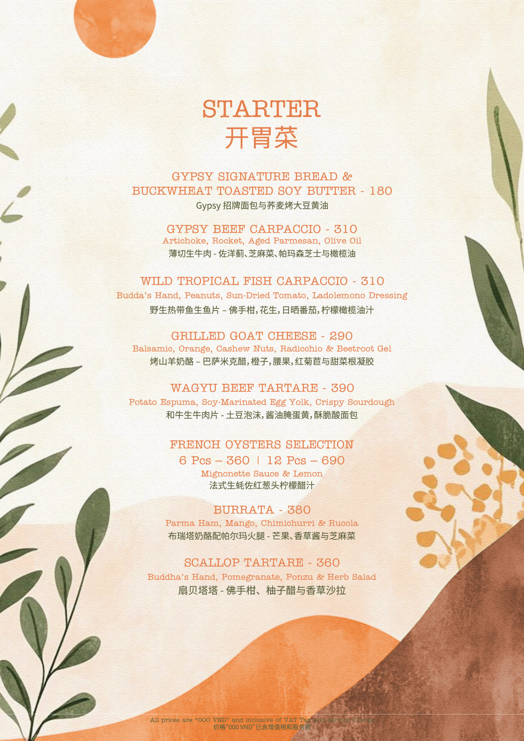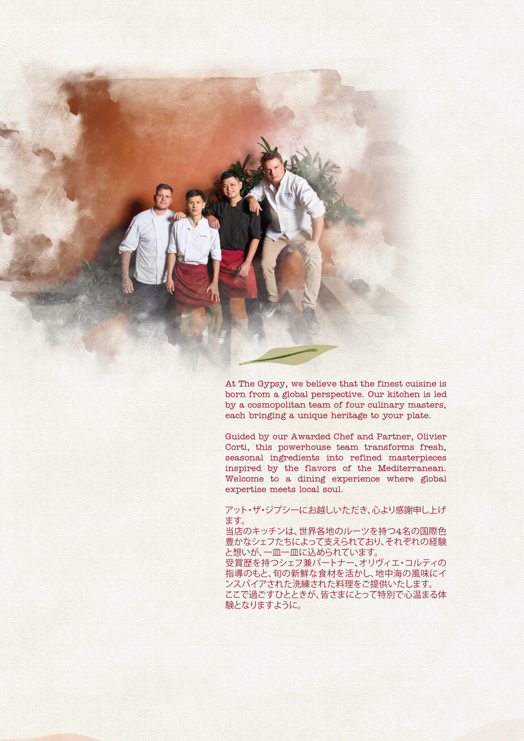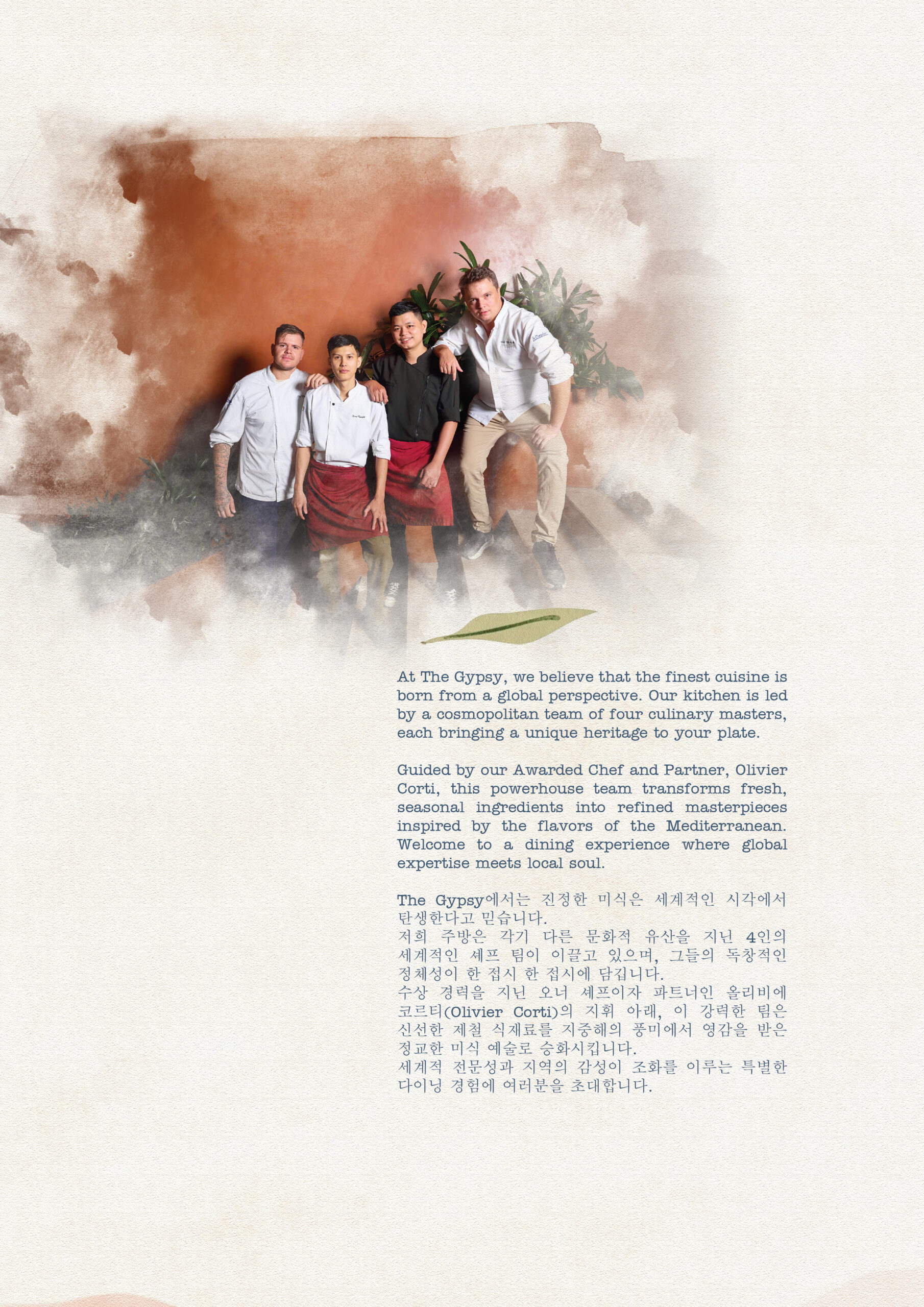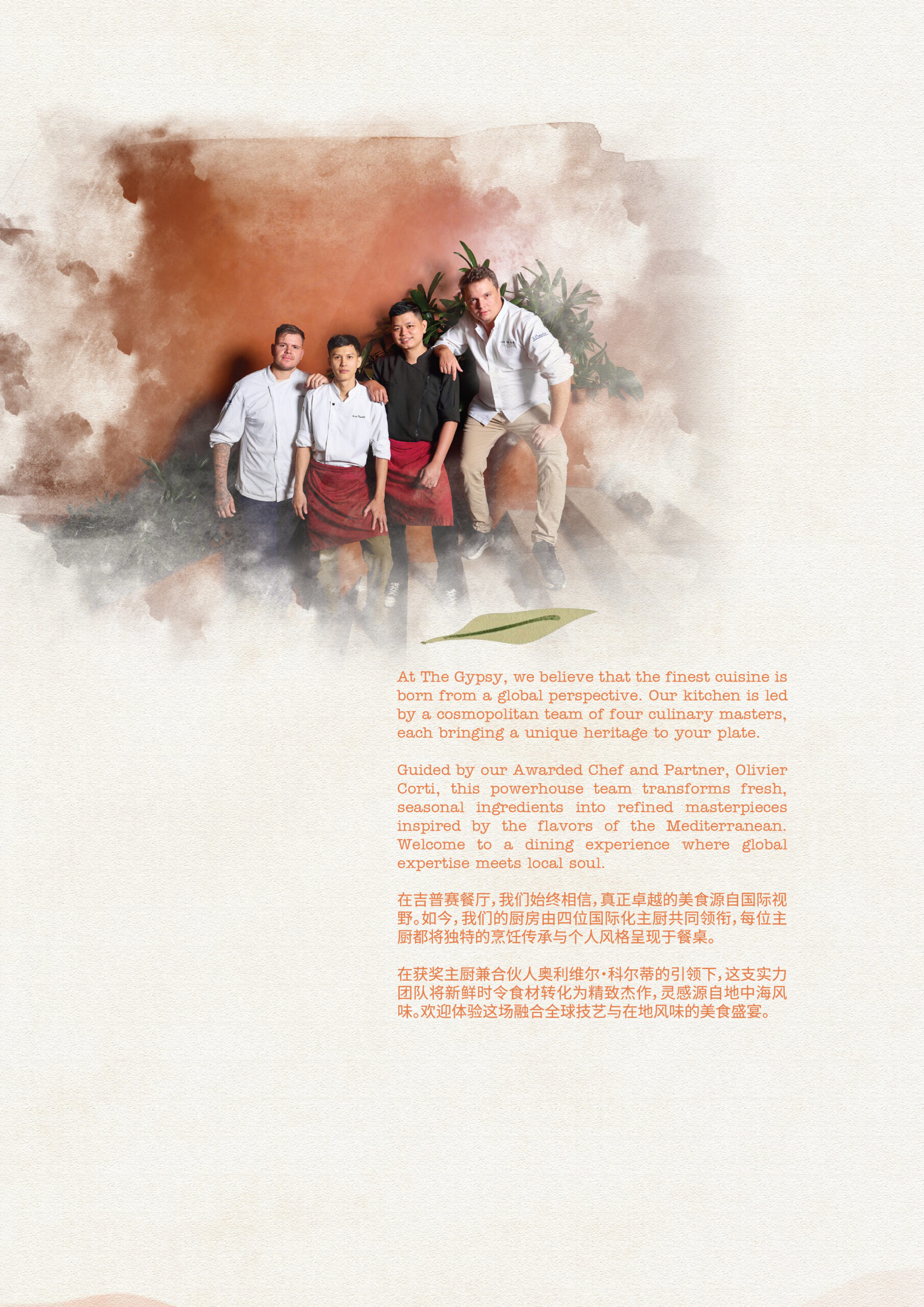 在 The Gypsy Da Nang 开启一场美食之旅,米其林星级法国厨师 Olivier Corti 将为您精心烹制现代地中海盛宴。他的创作融合了该地区的鲜活风味,从法国和意大利烹饪传统中汲取灵感。准备好被采用新鲜时令食材烹制的创新菜肴所惊喜和愉悦,所有菜肴均在岘港令人惊叹的城市景观背景下供应。